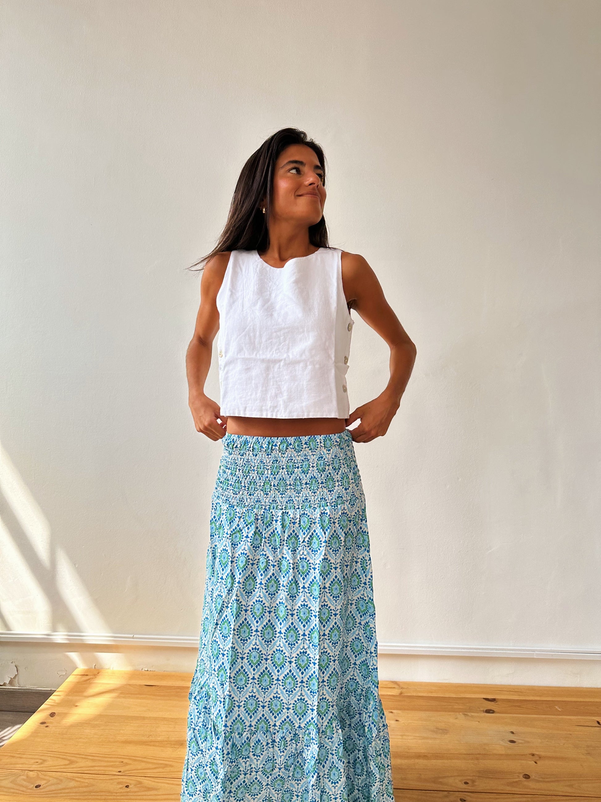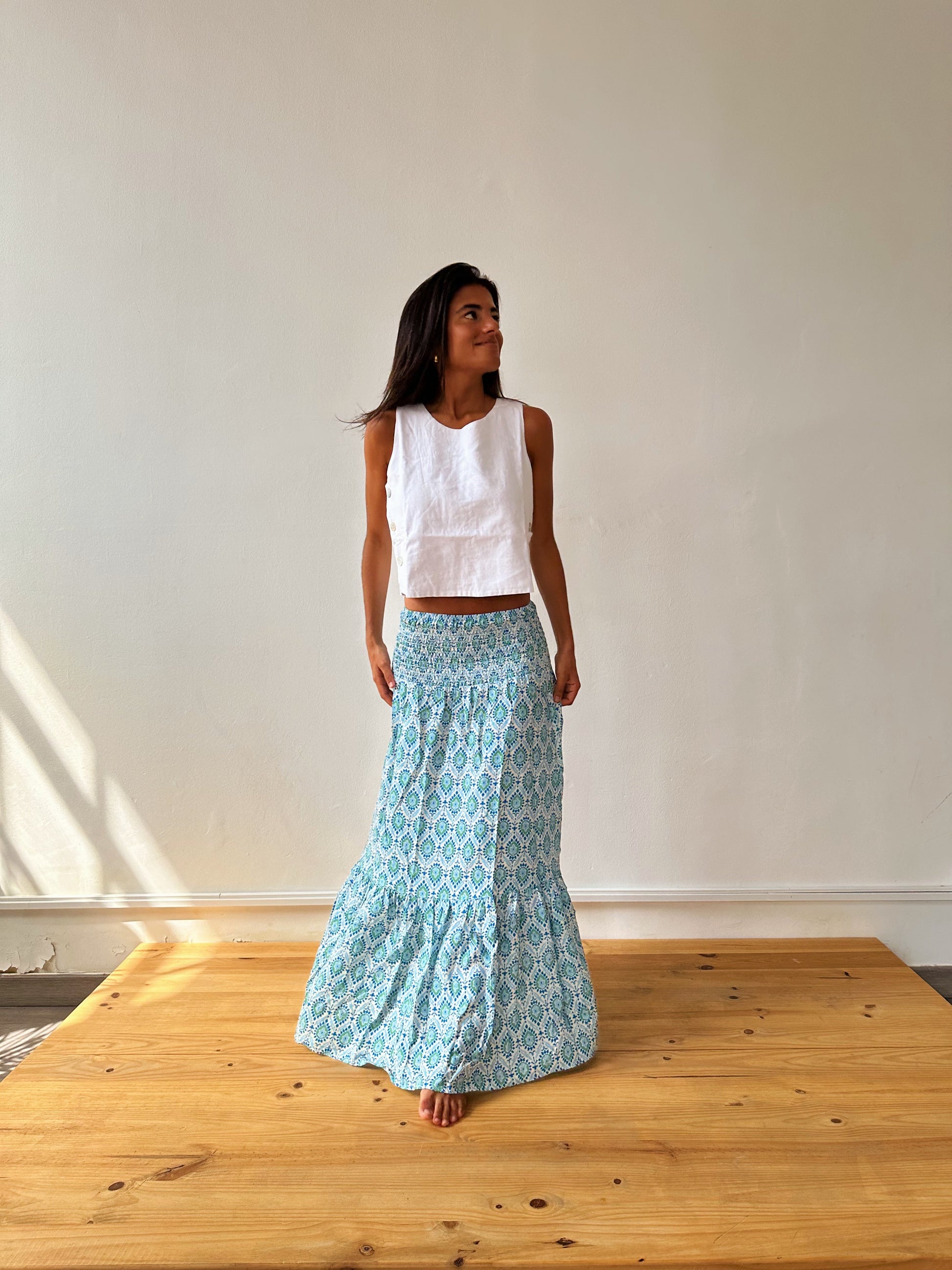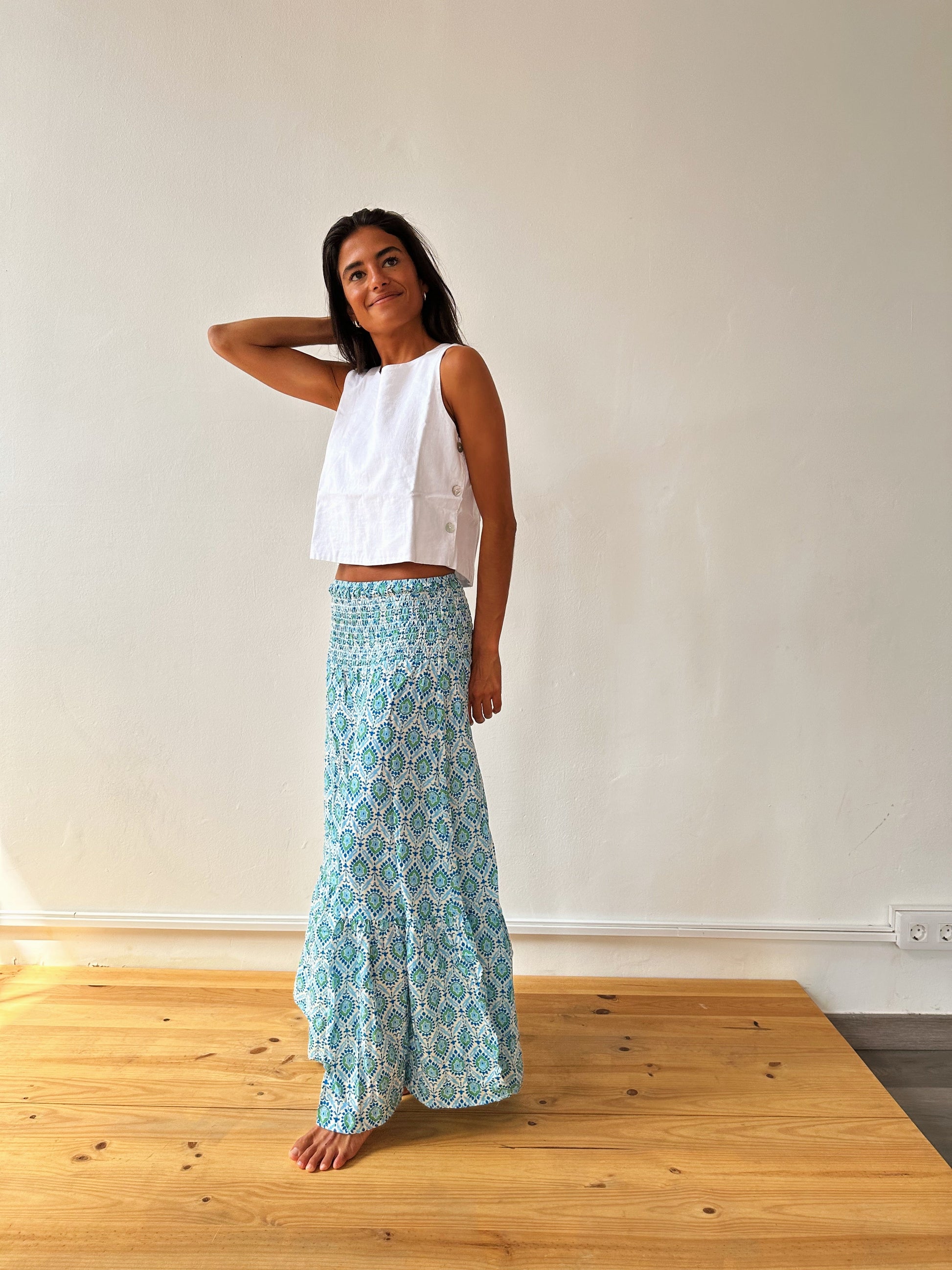 Printed skirt ideal for this time. Give color and freshness to your looks.