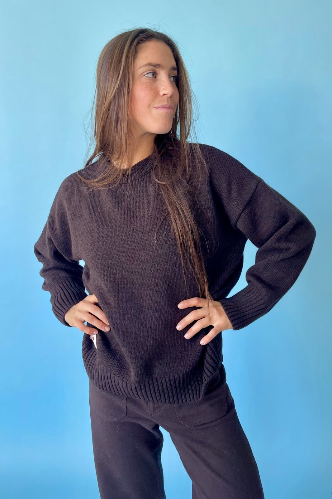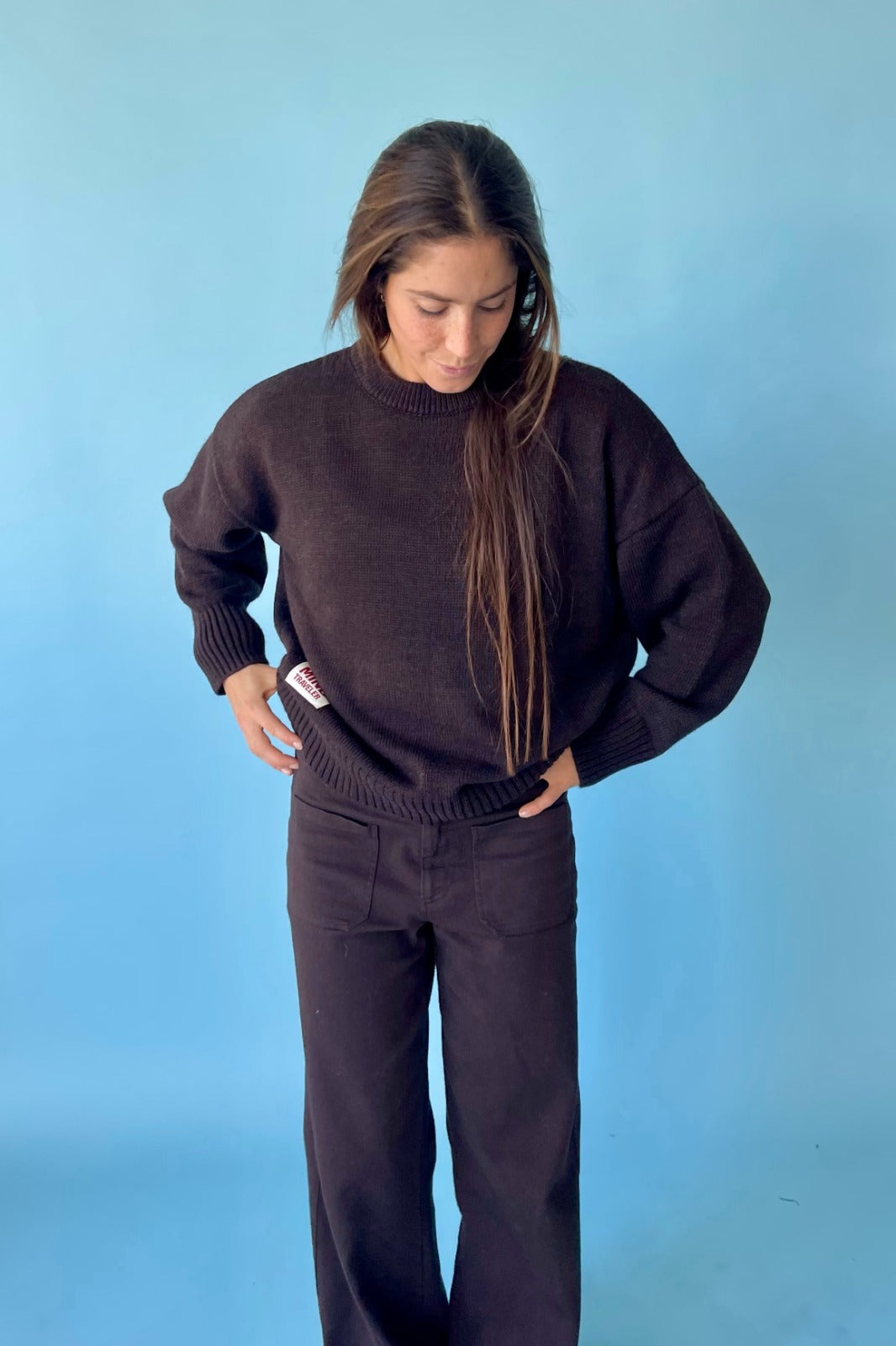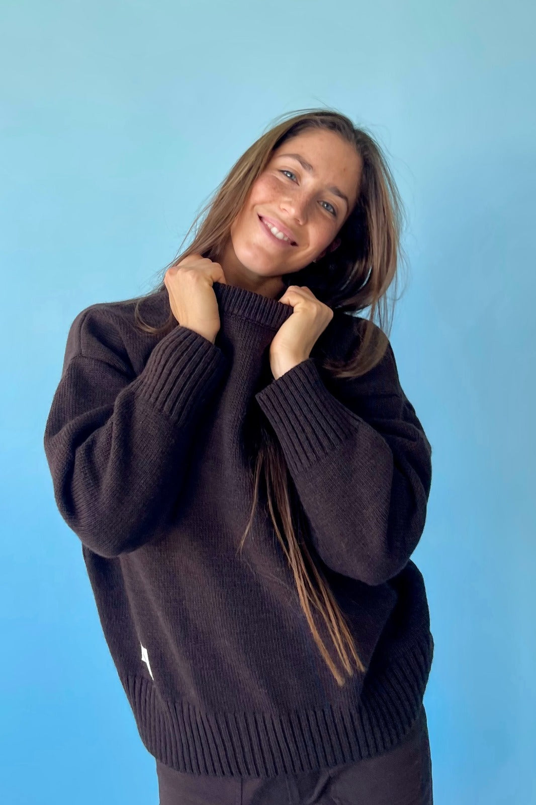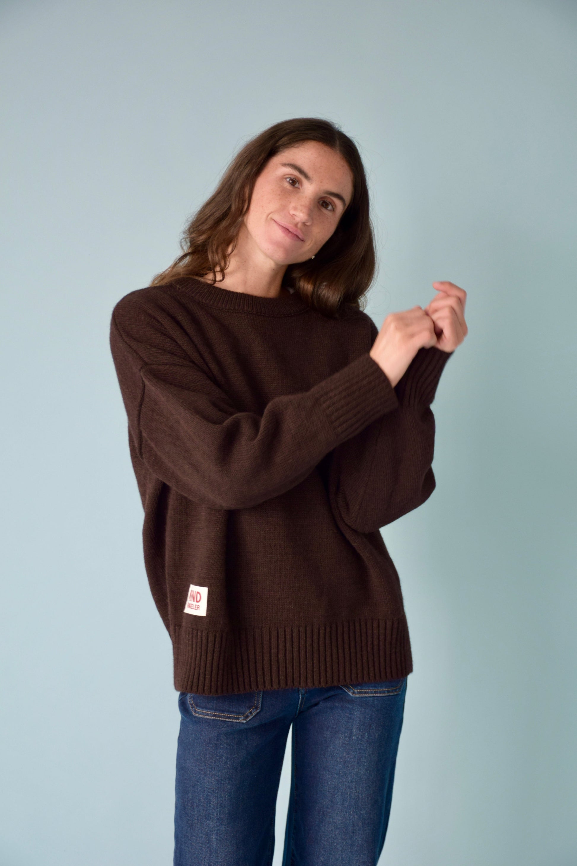 Jersey de manga larga y cuello redondo en color marrón chocolate.