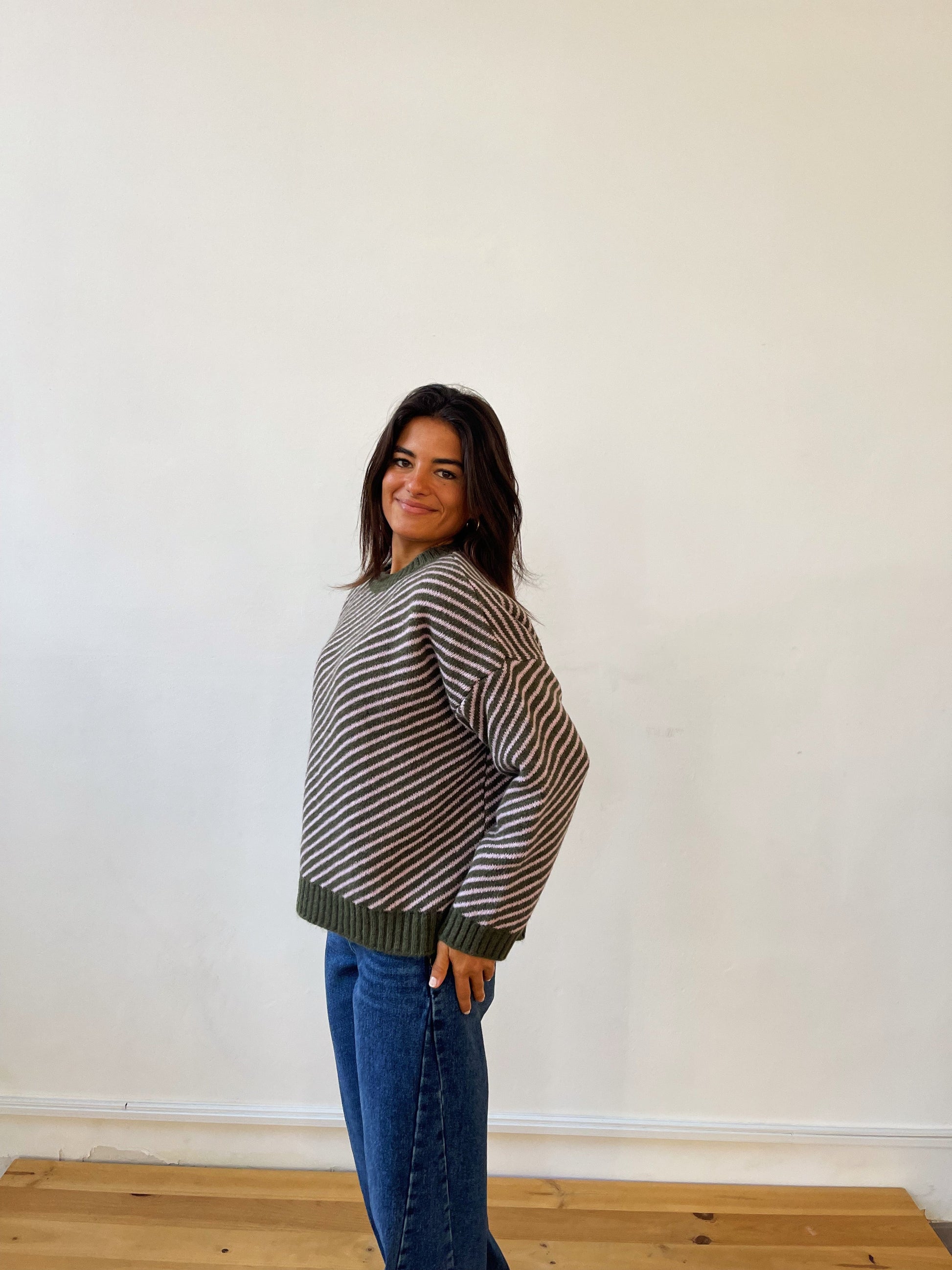 Jersey de manga larga con rayas en tonos kaki y rosa pastel