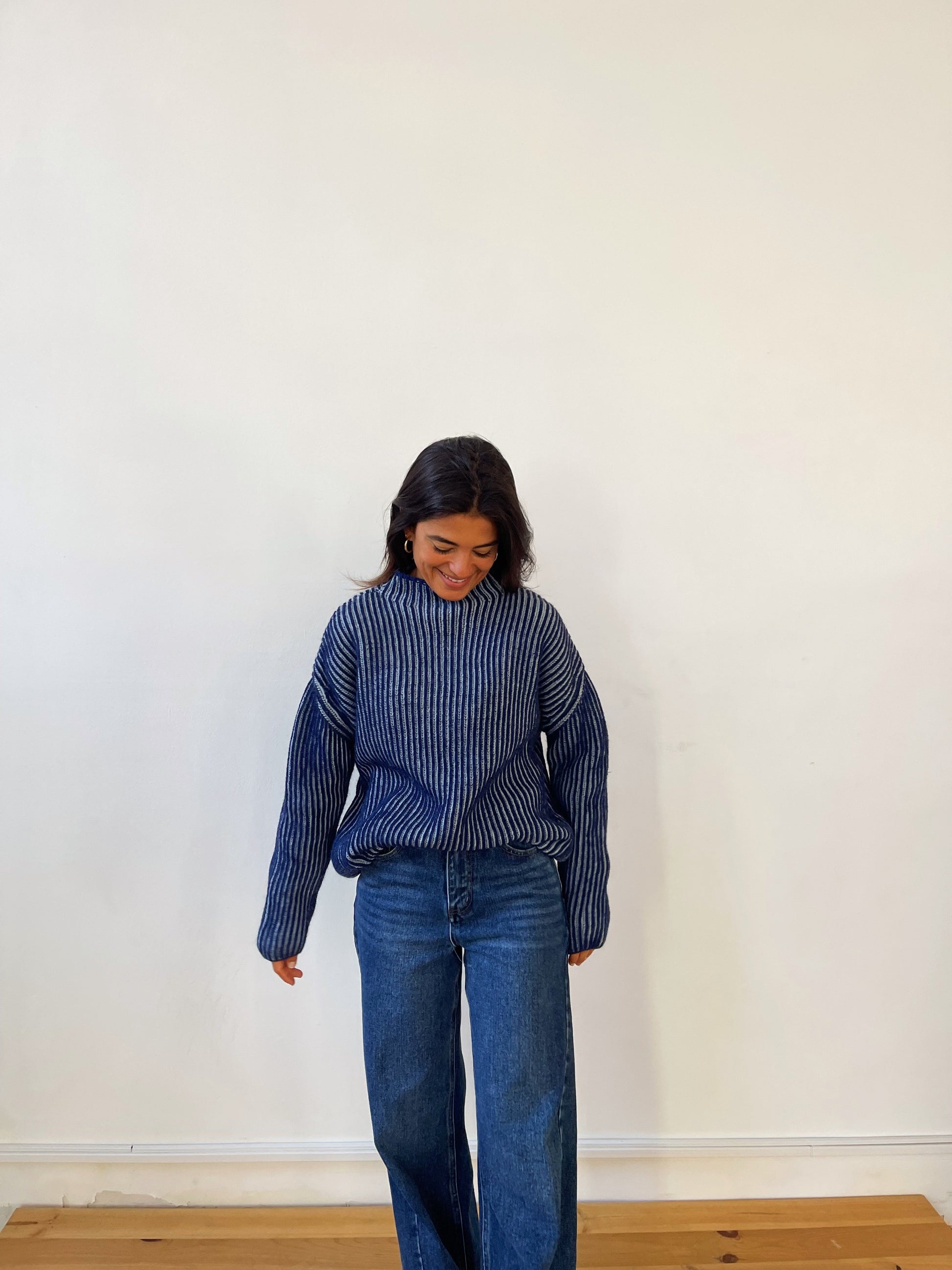 Jersey de punto en color azul marino y azul cielo. Muy calentito e ideal para conjuntar con todos nuestros tejanos