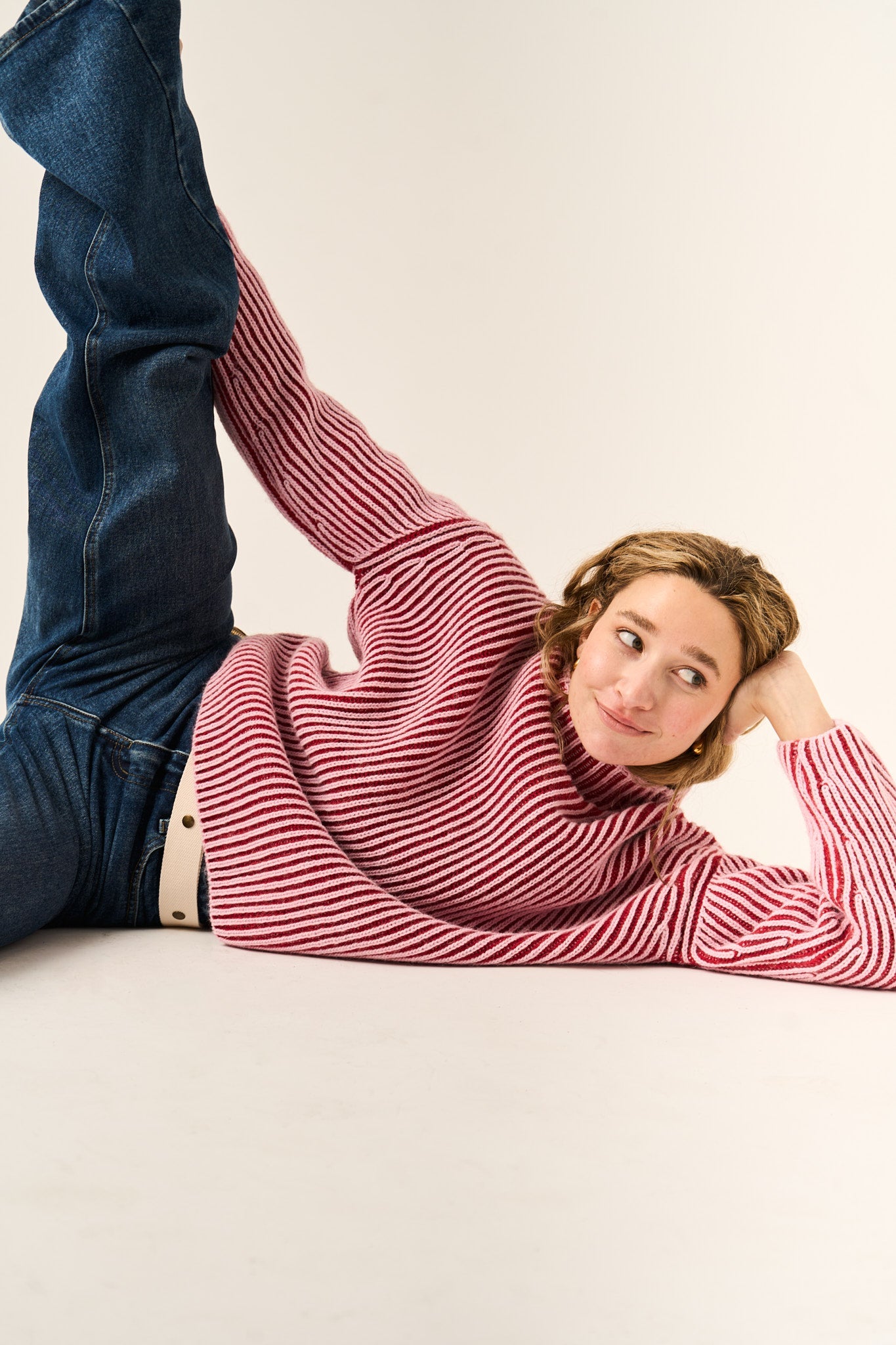 Jersey de punto en color rosa. Muy calentito e ideal para conjuntar con todos nuestros tejanos