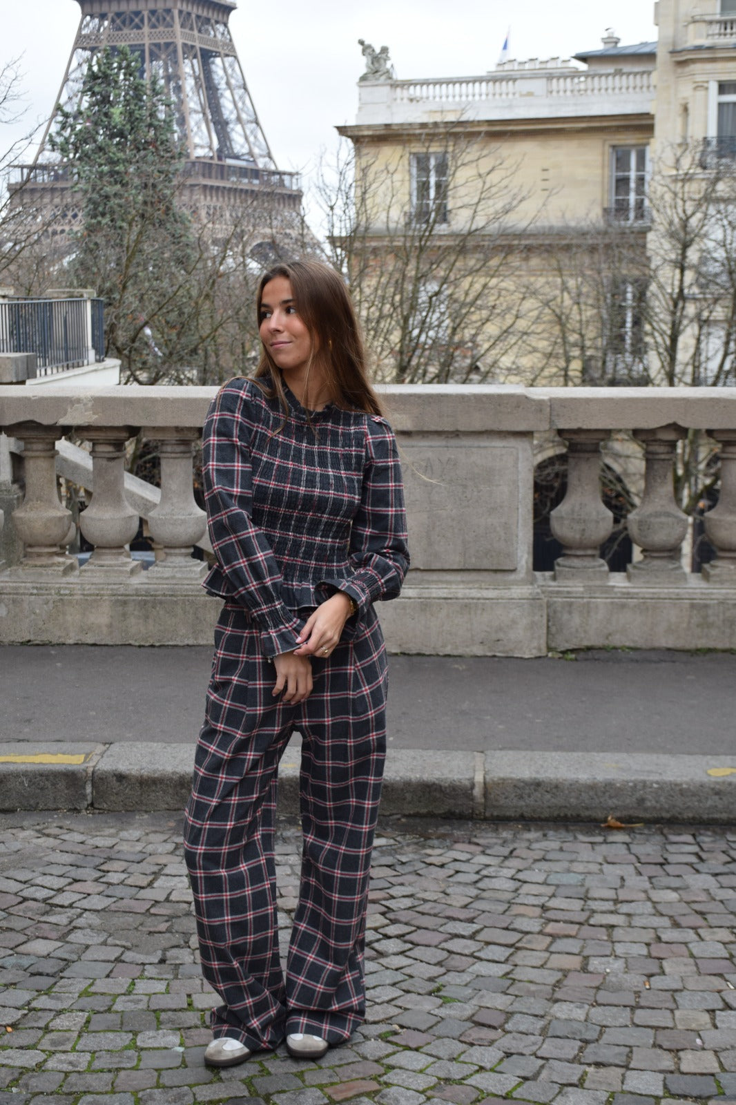 Pantalón Alia Cuadros Gris y Rojo
